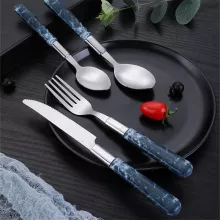 This cutlery set stands out due to its unique combination of style and functionality. The artistic blue marble design not only elevates your table aesthetics but also reflects a modern sensibility in kitchenware. Each piece is crafted to enhance your dining experience through thoughtful design, allowing for comfortable handling and easy use. It’s a perfect blend of elegance, practicality, and durability, making it a staple that you’ll love to use for years to come.