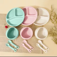 Our silicone feeding set is designed for babies and toddlers learning to self-feed, making it ideal for ages 1 to 6 years. The strong suction base on the plate and bowl keeps them firmly in place, preventing accidental spills and giving your child more control. The soft silicone spoon and fork are perfectly sized for small hands, helping to develop motor skills and encourage independent eating.