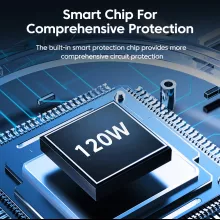- 120W power output charges multiple devices quickly and efficiently.