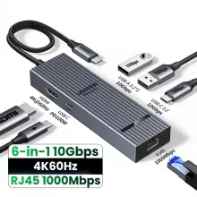 - 6-in-1 Design: Includes Gigabit Ethernet, 4K60Hz HDMI output, PD100W Charging port, 10Gbps USB A, USB C 3.2 Data Ports.