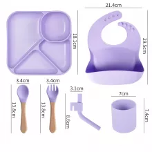 The suction base on the plate and bowl sticks firmly to most smooth surfaces, preventing spills and flying food. The ergonomically designed spoon and fork are easy for babies and toddlers to grip, encouraging self-feeding skills. Plus, the soft yet durable silicone is heat-resistant and dishwasher-safe, making cleanup quick and effortless.