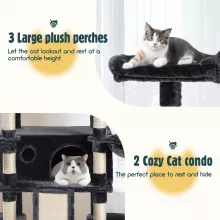 - Comfort & Fun in One: With 3 spacious top perches, 6 plush condos, and sisal-covered scratching posts, this cat tower caters to your cat’s need for rest, play, and scratching.