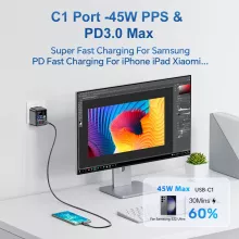 - Fast Charging with QC3.0, PD3.0 & PPS: Whether you’re charging your **iPhone**, **Samsung Galaxy**, or **Xiaomi device**, this charger supports the latest fast-charging protocols, including **QC3.0**, **PD3.0**, and **PPS**, ensuring your devices charge quickly and efficiently. Charge your **iPhone** from 0% to 50% in just **30 minutes**!