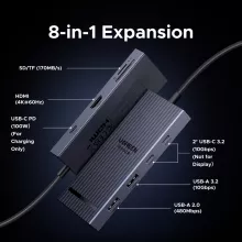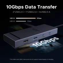 This hub is packed with high-performance ports, so you can handle more without the clutter of multiple adapters. Enjoy crystal-clear 4K UHD video at 60Hz via HDMI for presentations, streaming, or gaming. Transfer data at lightning speed with USB-A and USB-C 3.2 Gen 2 ports offering up to 10Gbps rates. Keep your devices powered and ready with up to 100W Power Delivery pass-through charging. Built-in SD and TF card slots make it perfect for photographers and creators who need quick, easy access to their media files.
