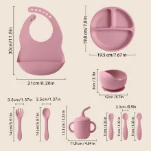 Make every mealtime simple, safe, and fun with this 9-piece silicone baby tableware set. Designed for babies and toddlers from 0 to 6 years old, this set includes everything your little one needs: a sippy cup, spoon, fork, mini utensils, waterproof bib, suction plate, and bowl. Crafted from soft, BPA-free silicone, each piece is gentle on tiny hands and gums, ensuring comfort while promoting independent eating.