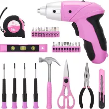 This versatile kit includes everything from a 3.6V cordless screwdriver to pliers, a claw hammer, utility knife, adjustable wrench, measuring tape, level, scissors, and more. Whether you’re opening boxes, hanging shelves, fixing loose handles, or tackling light DIY projects, these tools provide excellent comfort and control.