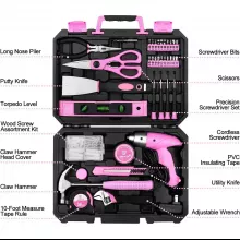 Take on everyday home projects with confidence using this 98 piece pink household tool kit. Designed with both practicality and style in mind, this all-in-one set gives you the essential tools you need for quick fixes, small repairs, and DIY projects. From hanging frames to tightening screws, this compact kit ensures you always have the right tool at hand.