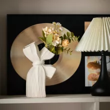 - Distinctive Shape: The sculptural form of this vase is designed to resemble a knotted bow or ribbon, creating a soft and flowing texture that contrasts beautifully with the smooth ceramic finish.