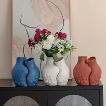 Each vase is crafted from premium quality ceramic featuring a smooth interior glaze and a textured matte finish on the outside for a refined, handcrafted look. Available in elegant white, calming blue, and earthy brown, this set effortlessly complements modern, bohemian, or Scandinavian-inspired interiors. Perfect for dried arrangements, it beautifully holds pampas grass, bunny tails, wheat, or other preserved florals.