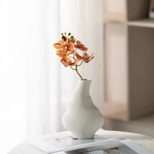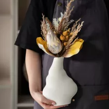 Crafted from premium-quality ceramic, this vase features a soft matte white finish that beautifully reflects light and enhances texture. The unique wavy silhouette and slender neck design make it ideal for showcasing dried flowers like pampas grass, bunny tails, or delicate artificial stems. Designed exclusively for dry arrangements, it’s perfect for creating long-lasting displays without the need for maintenance.