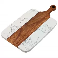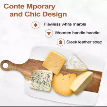 The smooth marble surface provides a cool and durable base for slicing and serving, while the warm acacia wood adds a touch of organic elegance. Together, they create a stylish centerpiece that enhances any table or countertop. Measuring conveniently for everyday use, it’s perfect for serving cheese, fruits, bread, sushi, or pastries with flair.