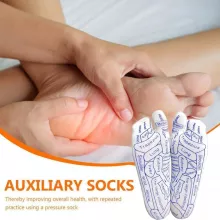 Simply slip on the socks and gently massage your feet along the printed acupressure zones using the included tools. Spend a few minutes daily for noticeable relief and improved comfort.