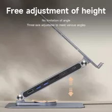 This stand isn’t just about lifting your laptop — it’s about upgrading your entire desk setup. The 360° rotating base makes sharing your screen effortless, while the adjustable height and angle help you maintain perfect posture and reduce neck and back strain. Plus, the integrated USB-C docking station brings ultimate connectivity right to your fingertips, including a 4K HDMI-compatible port for stunning video output.