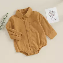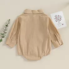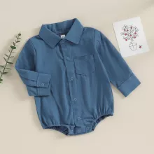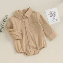 What sets this romper apart is its perfect balance between style and comfort. The fabric feels smooth against the skin, allowing your baby to move freely while maintaining a neat, dressed-up appearance. Whether you’re dressing your little one for a holiday celebration, birthday party, or simply for cute everyday wear, this romper brings sophistication to even the smallest wardrobes. The solid color and timeless design make it easy to pair with socks, shoes, or accessories for a complete outfit.