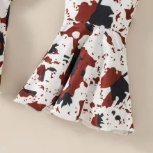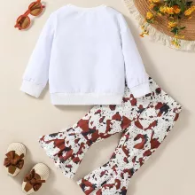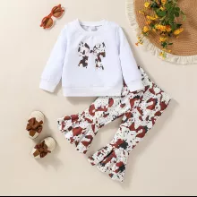 Whether it’s a casual day out, a family gathering, or an autumn stroll in the park, this outfit keeps your child looking picture-perfect without compromising comfort. The pullover sweatshirt features an O-neck design and a sweet bow detail that adds a touch of girly elegance. The flared pants with a matching print give the set a trendy yet playful vibe, making it a go-to outfit for any casual occasion.