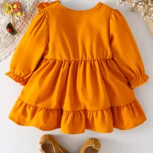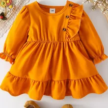 Perfect for any occasion, this dress offers a blend of practicality and charm. The round-neck design and regular long sleeves keep your little one comfortable, while the easy button detail adds a touch of sweetness and convenience for dressing. Its lightweight knit fabric is gentle, breathable, and suitable for spring, summer, autumn, and winter wear—just layer it up or wear it alone.