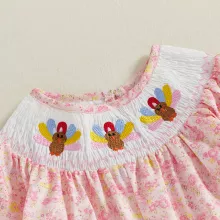 - Beautiful smocked detail with festive turkey embroidery