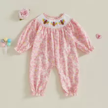 Celebrate your baby girl’s first Thanksgiving in sweet style with this charming long sleeve romper. Made from super soft polyester fabric, it keeps your little one cozy while allowing plenty of movement for play and snuggles. The delicate turkey embroidery and smocked design add a festive touch, making it the perfect outfit for family gatherings, holiday photos, and those precious first holiday memories.