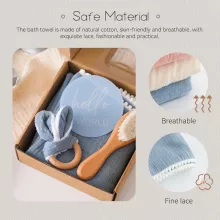 - Comfort and Care – Soft cotton towels and a wooden brush provide a calming touch during bath time, ensuring comfort and a positive experience for both you and your baby.