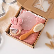 What makes this set truly special is its thoughtful combination of practicality and entertainment. The baby towel is designed with a square shape that’s easy to wrap around your little one after a bath, and the wooden brush is soft enough to gently massage your baby’s scalp. The decompression toy offers a playful and stress-relieving experience, making it a great gift for babies aged 0 to 6 years.