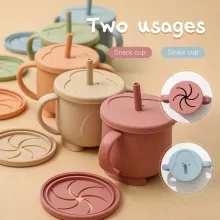 - 2-in-1 Design – Functions as both a straw cup for drinks and a snack cup for solid foods.
