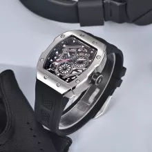 Unlike ordinary sports watches, this one combines high-performance features with a bold luxury look. The large dial offers easy readability, while the clean, numberless face adds a refined touch. Its versatility means it’s perfect for casual days, business meetings, outdoor adventures, and sports activities alike. Every detail, from the secure buckle clasp to the sleek matte finish, has been crafted for men who want both function and fashion in one package.