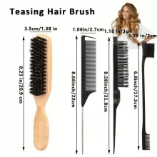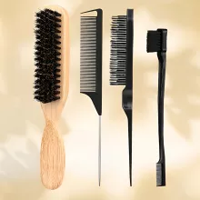 Upgrade your hair styling routine with this versatile boar bristle hair brush set. Designed with a natural wooden handle and paired with a precise rat tail comb, this set is perfect for smoothing edges, taming flyaways, teasing volume, and enhancing the natural shine of your hair. Whether you choose the 1, 3, or 4-piece set, you’ll have the right tools to achieve salon-worthy results at home or on the go.