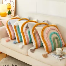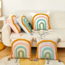 Add warmth, style, and a touch of artistry to your home with this Bohemian Tufted Geometric Arch Pillow Cover. Designed with rich textures and playful tassels, this decorative cushion cover instantly upgrades any sofa, chair, or bed. Its vibrant yellow geometric pattern and hand-tufted details bring life to any room, making it a perfect accent piece for modern, eclectic, or boho-inspired interiors.