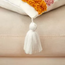 - Unique texture – Embroidered tufting and tassels create a cozy, handmade feel.