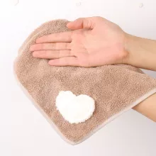 Made from soft coral fleece material, this hand towel offers excellent water absorption while staying gentle on your skin. Its fine loops and delicate edging ensure durability, preventing loose threads, fading, or shedding. The contrasting color design with a sweet heart applique adds a stylish and cozy touch to your space, making cleaning and drying more enjoyable.