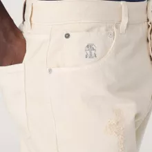 The Brunello Cucinelli Cotton Pants stand out with their meticulous attention to detail. The combination of high-quality materials, signature branding, and a timeless design ensures they remain a wardrobe staple for years to come. The worn-effect detailing and iconic leather patch elevate their appeal, adding a unique and recognizable touch to your outfit.