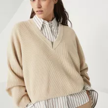 Add a touch of refined luxury to your wardrobe with the Brunello Cucinelli V-neck cotton sweater. Its effortless elegance, premium craftsmanship, and versatile design make it an essential piece for any fashion-conscious individual. Don’t miss the chance to own this timeless treasure – order yours now and experience the perfect blend of comfort and sophistication.