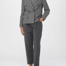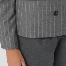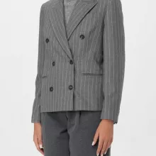 This blazer showcases meticulous attention to detail with its double-breasted front closure, adorned with contrasting buttons that enhance its distinctive character. The peaked lapels and subtle pinstripe design add a sophisticated flair, while the two front welt pockets and a single chest pocket provide both style and functionality. Its regular fit ensures a flattering silhouette, making it an ideal choice for all-day wear.
