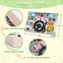 Made from durable, eco-friendly basswood plywood, the Busy Board is built to withstand hours of interactive play. The vibrant colors and playful design are sure to capture your child’s attention while helping them learn about cause-and-effect relationships and hand-eye coordination. Whether they’re pretending to drive a car or simply exploring the various switches, this busy board promotes developmental growth in a fun and engaging way.