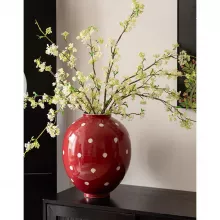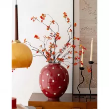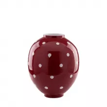 Looking for that perfect finishing touch for your home décor? This strawberry red polka dot vase is the ideal choice. Its lively color and timeless porcelain craftsmanship make it a standout piece that will effortlessly complement your modern or traditional décor. The medium size makes it versatile for any room, whether it’s holding a bouquet of fresh flowers or simply used as a statement piece on your coffee table or mantelpiece.