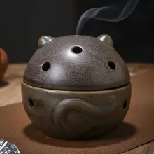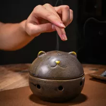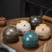 Transform your living room or meditation space with this elegant Chinese style incense burner, designed to bring serenity and warmth into your home. Crafted from high-quality ceramic, this beautifully detailed aroma burner features a charming Wealth Cat censer ball, symbolizing good fortune and prosperity. Its graceful design and natural colors—available in yellow, white, brown, green, and black—make it a perfect decorative accent that blends seamlessly with any décor style.