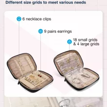 - Jewelry Protection: Spring pockets and secure fasteners keep necklaces tangle-free, while upgraded removable earring panels prevent studs from bending. A two-way zipper ensures everything stays safe inside.