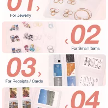 - Ring Binder Design: Equipped with a sturdy metal binder ring, the clear pages allow you to add, remove, or rearrange jewelry easily, just like a flipbook.