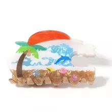 This hair clip is special because it transforms tropical daydreams into wearable art. The detailed scenery design features a complete beach landscape with swaying coconut trees, cheerful sun, and gentle ocean waves—all captured in bright, joyful colors. What makes it truly special is the original artistic design that goes beyond simple patterns to create a miniature masterpiece for your hair. The high-quality acrylic maintains its vibrant colors through sun exposure and summer activities, while the strong claw mechanism keeps your style secure. It’s this combination of artistic creativity, quality materials, and playful functionality that makes it exceptional.