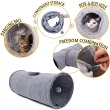 This isn’t just any cat tunnel—it’s a thoughtfully designed play space that caters to your cat’s every need. The combination of soft suede, crinkle paper, and interactive elements like the dangling ball and peek hole make it a unique addition to your cat’s toy collection. It’s more than a tunnel; it’s a gateway to endless fun and exploration.