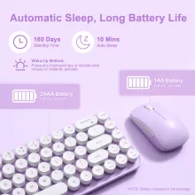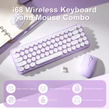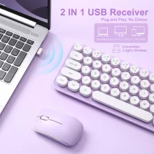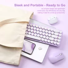 Add a splash of personality to your workspace with this retro-style wireless keyboard and mouse combo. Designed with a 68-key compact layout, it keeps all essential keys while freeing up 40 percent of your desktop space. Its vibrant purple color and typewriter-inspired round keycaps make it a perfect blend of nostalgia and modern functionality. Lightweight and portable, this set easily fits into your backpack, making it ideal for both home and office use.