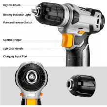 The cordless drill is compact, weighing only 1.65 pounds, making it effortless to handle with one hand. With a no-load speed of up to 800 rpm, it is perfect for drilling into wood or plastic and tightening or loosening screws. The rechargeable battery uses a convenient Type-C charging cable, and a built-in indicator light lets you know when it’s time to recharge. The tools in this set are crafted from durable alloy steel with a chrome-plated finish to resist corrosion, and the ergonomic grip ensures comfortable, non-slip use.