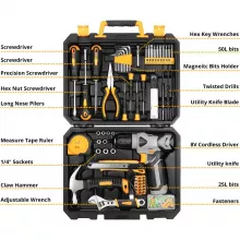 Take on any repair or DIY project with confidence with this all-in-one toolset. Equipped with a lightweight 8V cordless drill and a full collection of essential hand tools, this kit is designed to make home maintenance, furniture assembly, and small repairs simple and stress-free. Whether you are a beginner or a seasoned DIYer, this toolkit gives you everything you need right at your fingertips.
