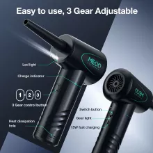 This cordless air blower is the perfect solution for keeping your workspace clean and organized. Its high-powered air stream makes light work of dust, dirt, and debris, allowing you to clean everything from your computer keyboard to the tightest nooks of your home or office. The three adjustable speeds give you complete control, making it easy to tackle different cleaning jobs with precision. Thanks to its long-lasting battery and fast charging, you can clean uninterrupted for longer periods, saving you time and effort.