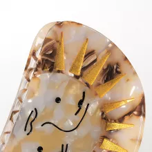 This hair clip is special because it transforms celestial inspiration into high-fashion elegance. The cosmic print pattern isn’t just a simple design—it’s a carefully composed arrangement of stars, moon, and sun elements that creates a harmonious balance between whimsy and sophistication. What makes it truly special is the quality acetate material that gives the clip a premium, slightly translucent quality, allowing light to play beautifully through the celestial patterns. The medium size makes it substantial enough to be noticed but versatile enough for daily wear. It’s this combination of poetic inspiration, quality materials, and trendy design that makes it exceptional.