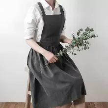 This apron is made from a breathable blend of cotton and linen, giving it a soft texture that feels light and natural against the skin. The sleeveless and reversible design lets you flip and wear it both ways, extending its use and keeping your look fresh. Its tatting weave craftsmanship ensures long-lasting durability, while the absence of harsh chemicals makes it gentle for you and the environment. Perfect for long hours of use in the kitchen, garden, studio, or flower shop, it allows free movement and all-day comfort.