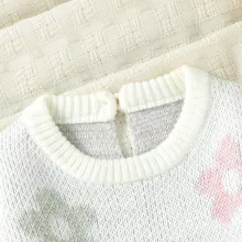This knitted baby dress is made to keep your infant warm without sacrificing style. Whether it’s a casual day at home, a family outing in crisp autumn weather, or a playful spring afternoon, this dress offers the perfect combination of fashion and function. The soft, breathable fabric ensures your baby stays cozy without overheating, making it versatile across cooler seasons. Plus, the charming floral design and ruffled skirt bring a delightful flair to your baby’s wardrobe, making her stand out with cuteness and comfort.
