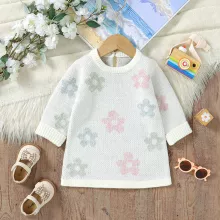 Dress your baby girl in warmth and style with this adorable knitted sweater dress, perfect for autumn, spring, and winter days. Crafted from soft polyester and 100% acrylic knit, this long-sleeve dress features a lovely floral pattern and delicate ruffle details, adding a sweet touch to your little one’s everyday outfit. Designed to fit true to size, this A-line dress gently flows to mid-calf length (about 21 to 23.6 inches), giving plenty of room for comfort and movement. The regular full sleeves and simple O-neck collar make it easy to layer over cozy leggings or tights.