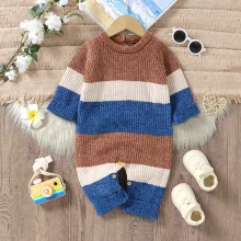 This romper stands out with its thoughtful design and high-quality materials. The knitted fabric not only offers gentle warmth but also stretches just enough to keep your baby comfortable during playtime or naps. The pullover style makes dressing hassle-free, saving time for busy parents. Its striped pattern adds a touch of classic style that never goes out of fashion, making it easy to mix and match with other baby wardrobe essentials.