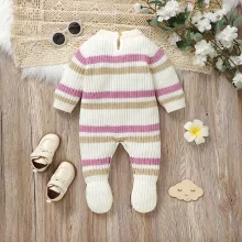 Wrap your baby in warmth and comfort with this adorable newborn baby romper. Crafted from soft acrylic knit, this jumpsuit is designed to keep your infant cozy during chilly autumn, spring, and winter days. Its long sleeves and foot-wrapped design ensure your baby stays snug from head to toe. Featuring a classic striped pattern and a comfortable pullover style with an easy O-neck, this romper is perfect for everyday wear.
